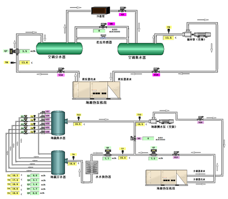 依托PLC控制与能源监测系统,平台支持对温度、流量、功率、能耗等关键数据的在线采集与数字化记录,可开展面向数据驱动的运行诊断与控制优化实验。该平台为可再生能源在建筑中的高效利用与智能化运行提供可验证、可量化、可迭代的实践环境,支撑面向“双碳”目标的绿色能源与数智化建筑人才培养。