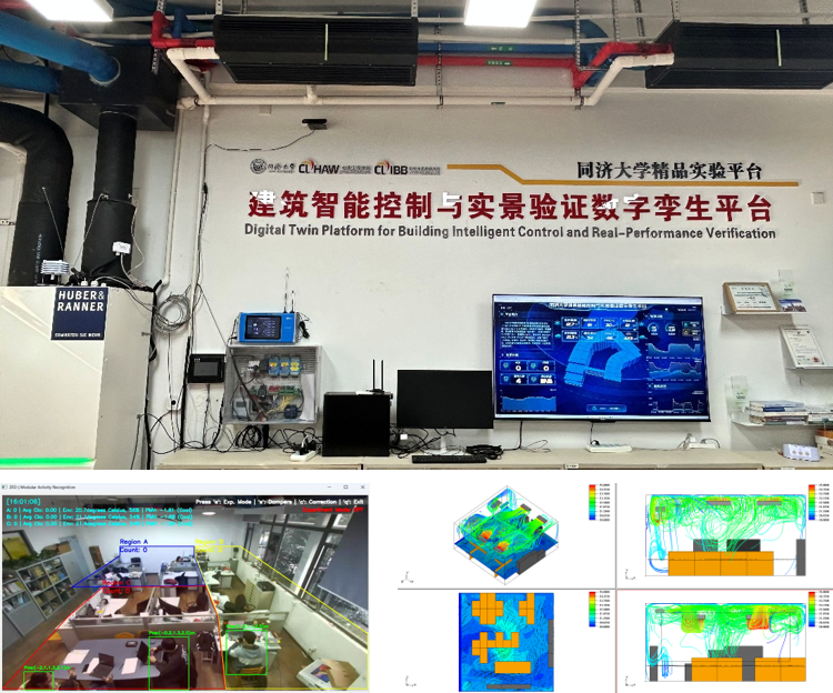 平台面向建筑系统数智化升级与绿色低碳转型,围绕建筑环境与能源系统的“数据驱动运行—智能决策控制—绿色绩效评估”主线,构建可教学、可科研、可示范的综合实验场景。平台以空调与通风等典型用能系统为载体,借助物联网实现多源运行数据的高频采集、无线传输与设备可控接入,打通设备、系统、空间与人的信息链路,形成面向真实建筑场景的全链路感知基础;基于数字孪生建立虚实同步的可视化映射与动态诊断能力,将室内环境状态与设备运行工况联动呈现,支持热舒适、空气品质等环境指标与COP、系统能耗、碳排放等能碳指标的同步测评与对标分析。面向绿色能源高效利用与按需供能目标,平台引入图像识别与机器学习方法,对人员分布、活动特征与使用需求进行辨识,形成“人—环境—设备”协同的自适应控制与节能优化策略,支撑无人值守条件下的运行策略迭代与效果验证。