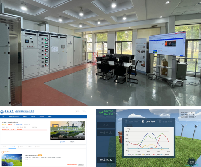 “碳”:通过物理实验系统,构建微电网系统数字底座,搭建了“建筑碳中和虚拟仿真实验平台”。