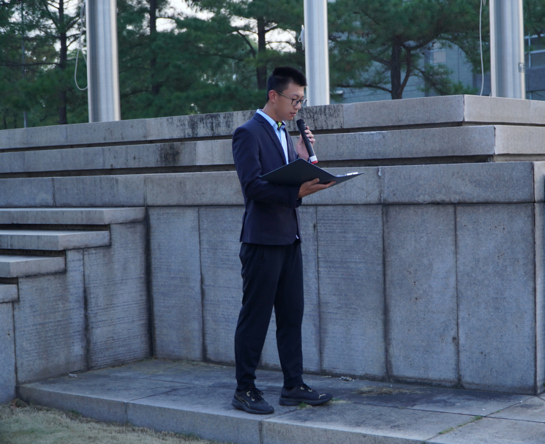 钟诗懿同学就“青春为中国式现代化挺膺担当”这一主题发表国旗下讲话。钟诗懿同学主要从“九三阅兵”入手,在中国式现代化的新征程上,每一个人都是主角,每一份付出都弥足珍贵,每一束光芒都熠熠生辉。同时,希望同学们传承同济精神,在新时代的星辰大海中乘风破浪,铭记抗战历史,从历史中汲取奋进力量,担当使命,奋发有为,为强国建设、民族复兴伟业贡献青春力量。