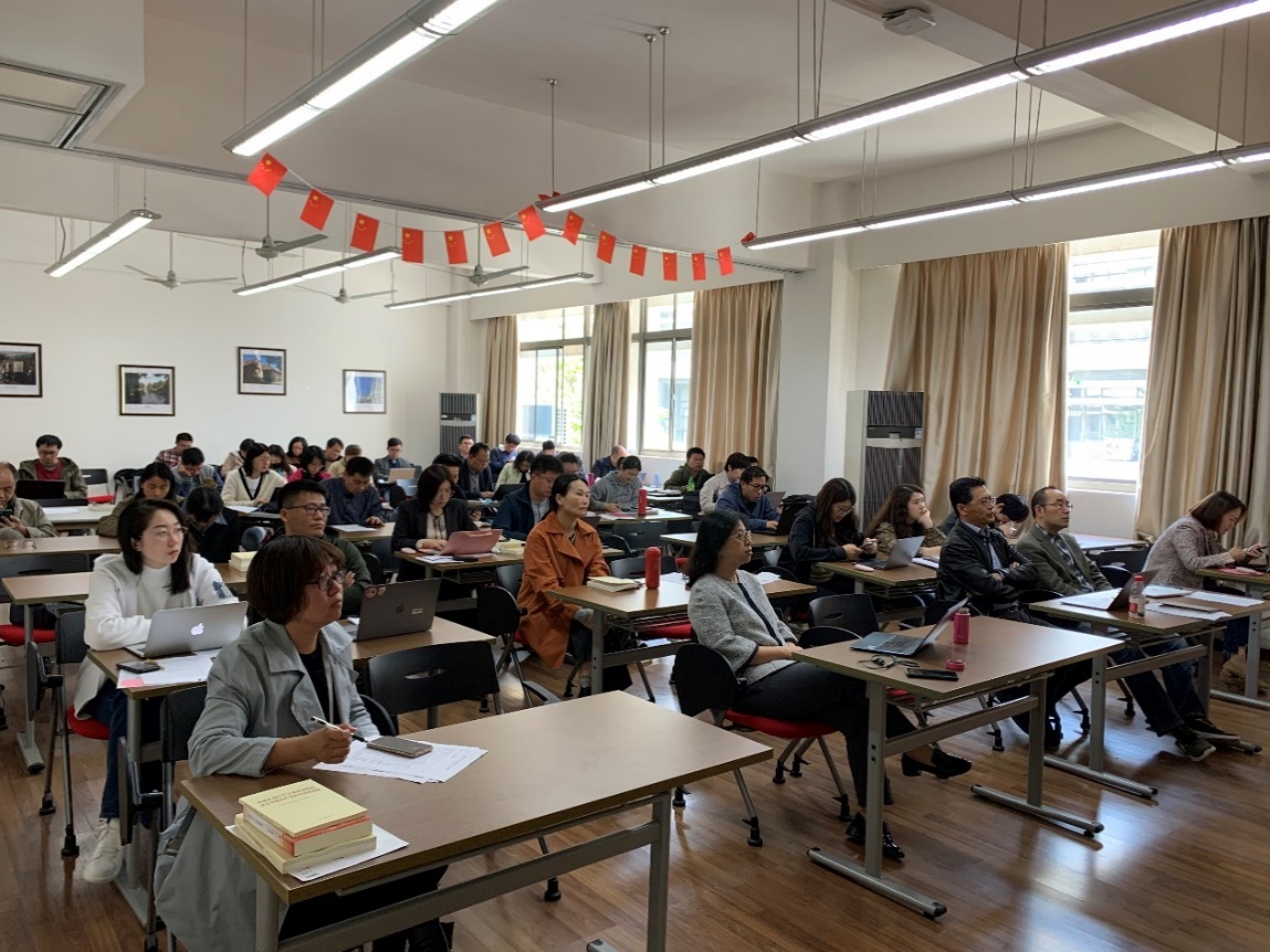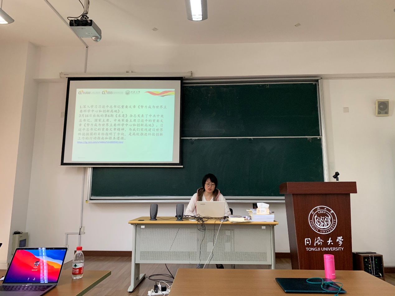 随后,全体教职工还一起学习了习近平总书记在清华大学师生座谈会上的重要讲话精神。4月19日,在清华大学建校110周年校庆日即将来临之际,中共中央总书记、国家主席、中央军委主席习近平来到清华大学考察。先后视察美术学院、成像与智能技术实验室、重点教学科研成果展示、西体育馆,了解学校深化改革、人才队伍建设、教学科研创新和服务国家发展等情况。随后,习近平与师生代表座谈并发表重要讲话。习近平总书记在清华大学考察时强调,党和国家事业发展对高等教育的需要,对科学知识和优秀人才的需要,比以往任何时候都更为迫切。作为高校教师,我们应认清在建设具有中国特色社会主义的世界一流大学过程中的自我使命。在教书育人方面,时刻牢记以培养德智体美劳全面发展的社会主义建设者和接班人为己任。作为同济大学的一员,要坚持中国特色世界一流大学建设目标方向,不忘初心,为双一流学校建设贡献自己的力量。