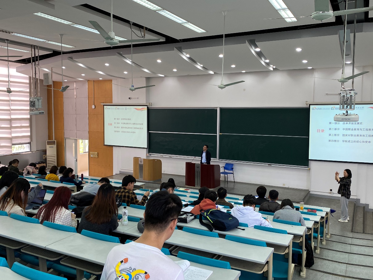 2020年11月17日,在中德工程学院与职业技术教育学院党委和中德工程学院与职业技术教育学院联合分党校的组织下,学院教工党员、学生党员和入党积极分子等百余名师生在嘉定校区济事楼301阶梯教室一起开展了“四史”学习教育专题学习活动,聆听了王继平书记关于改革开放发展史的专题报告。
