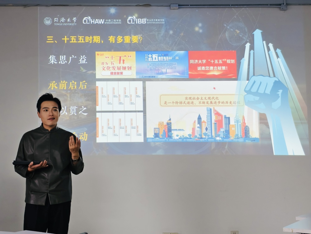 最后,曹卢将宏观蓝图与学院育人使命相结合,重点阐述了“十五五”期间的教育发展方向。他立足中德合作办学与职业技术教育的特色,勉励学员主动对标国家未来发展战略对人才的能力要求,将个人成长融入教育强国建设,将青春奋斗写入党和国家事业,努力成长为担当民族复兴大任的时代新人。