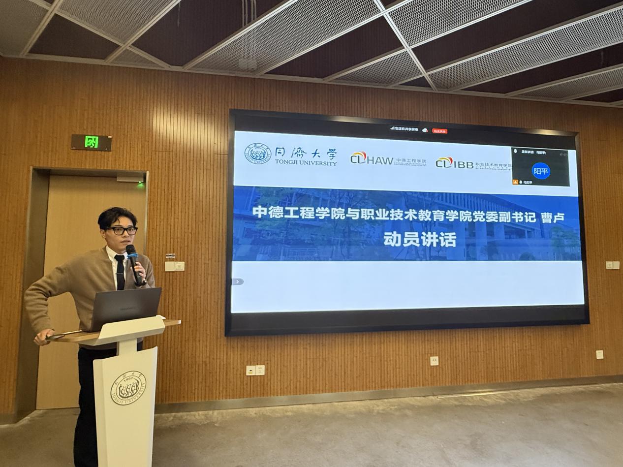 曹卢副书记在会上做动员讲话。他指出,中德工程学院2026届毕业生有不同的毕业去向,但都要及时准备、尽早谋划,要清醒认识到当前就业市场的严峻复杂形势,高校毕业生就业人数逐年增加,招聘需求更加多元,对复合能力和实践经验的要求显著提升。他对同学们提出三点希望,一是树立“先就业再择业”的务实心态,在实践中不断调整自己的职业规划;二是把握“秋招黄金时期”的求职节奏,主动积极作为;三是用好用足学校、学院提供的各类求职招聘资源。勉励同学们在新时代的舞台上绽放属于自己的光彩,在服务党和国家、服务广大人民中实现人生价值。