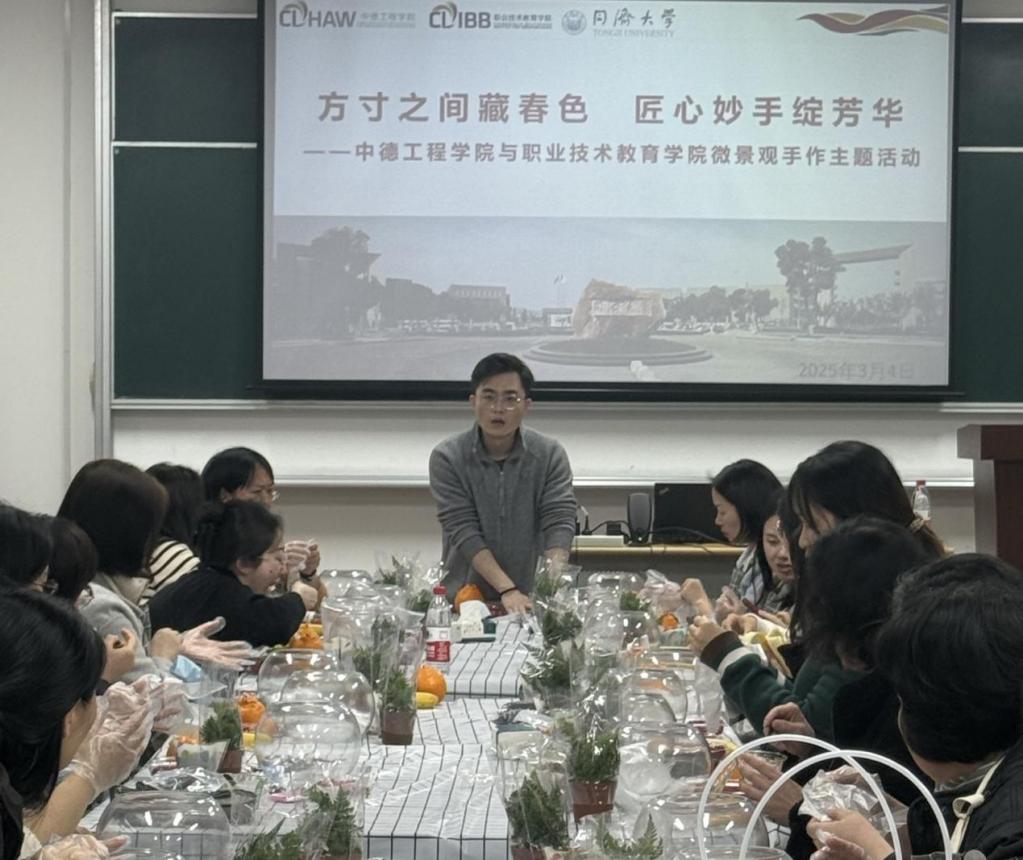 为庆祝三八国际妇女节,弘扬女教师们积极向上的精神风貌,3月4日下午,中德工程学院与职业技术教育学院工会特别组织了一场以“方寸之间藏春色,匠心妙手绽芳华”为主题的微景观手工制作活动。专业老师准备了丰富的制作材料和工具,并提供全程指导。此次活动不仅丰富了女教师的文化生活,增进了艺术鉴赏力和实践动手技能,同时也为女教师提供了一个展示自我、交流互动的平台。