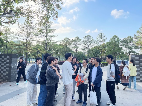 在经历了丰富多彩的实验室参观后,新生们还兴致盎然地开始了嘉定校园探索之旅。在大四学长的带领下,大家沿着中央大道一路前行,先后参观了嘉定校区标志性建筑——“仰望星空”和备受同学们期待的“满天星”小吃街。一路畅谈,中国学生和德国留学生们的友好交流也悄然升温。