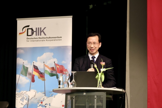 3月18日,德国高校国际合作联合会(DHIK)成立20周年暨中德工程学院成立20周年庆典在德国富尔达应用科学大学隆重举行。德国学术交流中心(DAAD)秘书长西克斯(Kai Sicks),德国联邦教育与研究部国际合作司副司长巴甘兹(Vivien Baganz),中国驻德国大使馆公使衔参赞黄伟,德国高校国际合作联合会主席、萨尔兰应用科学大学校长莱昂哈特(Dieter Leonhard),富尔达应用科学大学校长哈克扎尔(Karin Khakzar),同济大学校长、中国工程院院士郑庆华等出席活动。