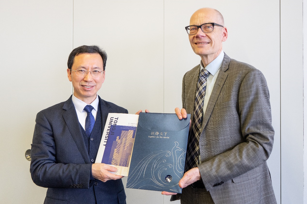 3月17日,作为中德工程学院20周年庆系列活动之一,中国工程院院士、同济大学校长郑庆华率团访问中德工程学院重要伙伴高校纽伦堡应用科学大学(Technische Hochschulen Nürnberg),深度了解德国应用科学大学独特的卓越工程人才培养模式及在校企合作方面的特色做法。纽伦堡应用科学大学校长奥伯贝克(Niels Oberbeck)教授、分管国际合作副校长慕默特(Uwe Mummert)教授以及来自电气工程学院、机械工程学院、工商管理学院院长和教授代表与同济代表团进行了深入交流。双方一致表示未来将进一步深化和拓展合作关系,特别也将强化教育数智化方面的工作。
