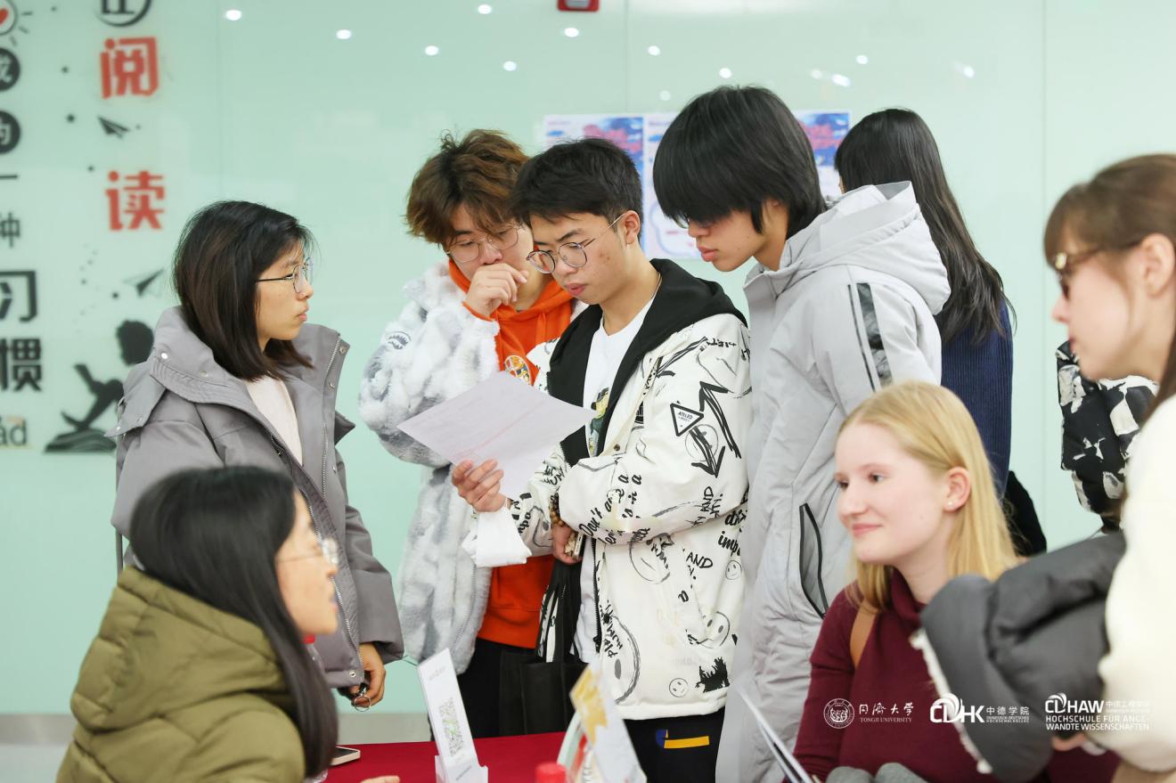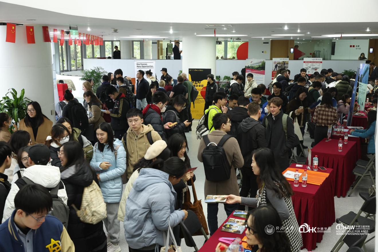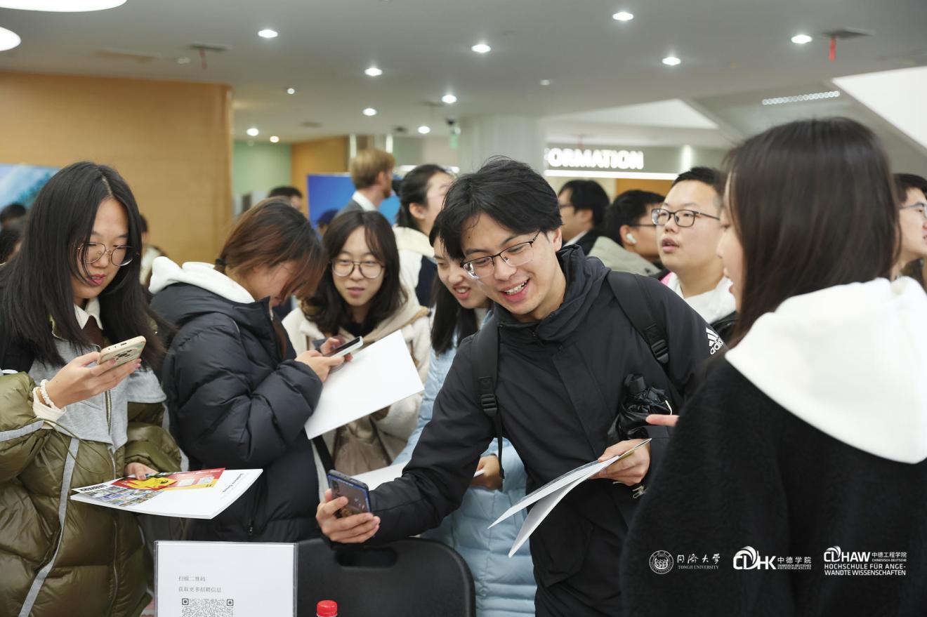 2023年12月12日,由同济大学中德学院和中德工程学院联合主办的“同济德国企业日”活动在四平路校区中德大楼德文图书馆举行。TUEV南德、采埃孚、费斯托等17家德国合作企业与德国海外商会联盟(AHK)参加活动,和200余名来自同济及其他兄弟院校的中外学子面对面沟通交流。