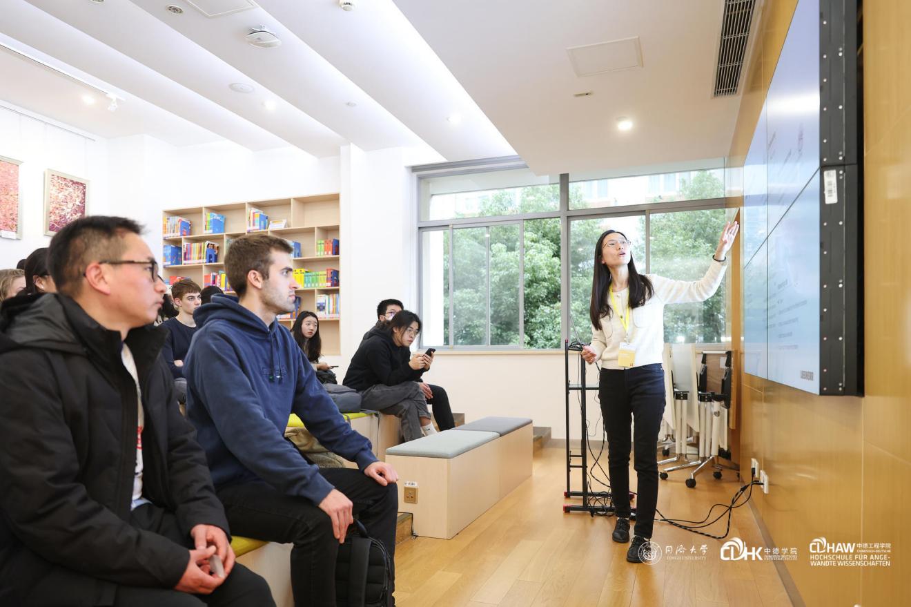 德国海外商会联盟大中华区人力资源解决方案部总监陈璐在开场报告中,强调提前进行职业规划,了解和培养职业心态(mindset)并进行多技能学习,有利于学生更快地认识自己,找到适合自己的岗位。这些对于人才需求的观点在之后的企业报告部分得到了呼应。许多工程类专业的同学特地从嘉定校区乘坐活动班车前来,与企业面对面交流,认识并深入了解了技术实力与创新能力卓越的德国企业,收获了“干货满满”的一手信息。此外,德国外教准备了趣味德国知识竞猜,获得第一名的学生可免费参加一期歌德学院的德语课程。