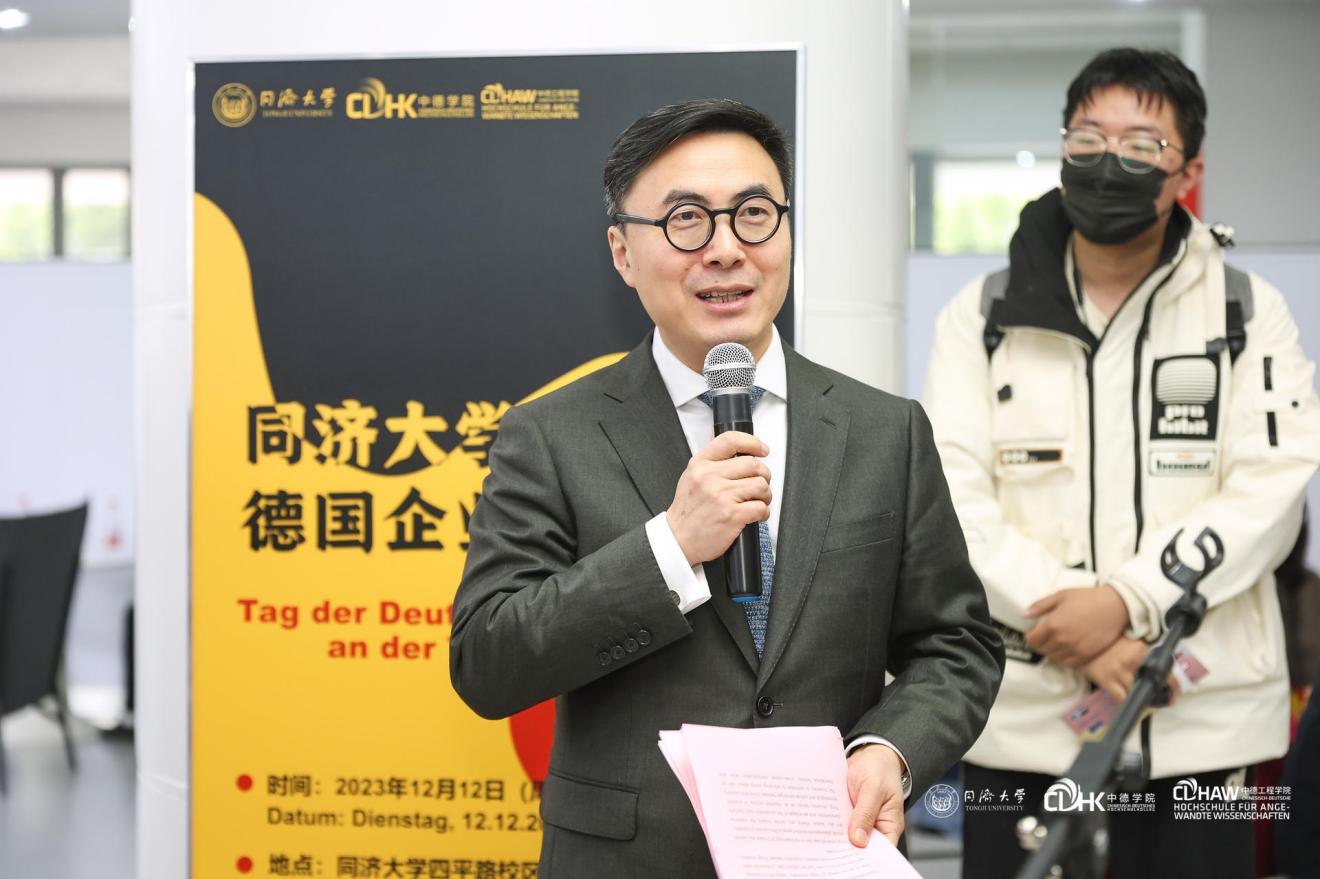副校长娄永琪出席活动并致欢迎词。他表示,同济大学在中德文化交汇碰撞中诞生,也始终传承和发扬对德合作的传统、特色与优势。中德学院和中德工程学院的重要办学特色之一,就是院企产学研用的深度融合发展。企业通过与学院共建基金教席,共同培养了数千名具有国际化视野、跨文化交际能力,学术能力出众的中德两国卓越人才;优秀校友活跃在各行各业,其中不乏在汉莎航空、舍弗勒等行业知名企业担任高管的校友。“同济德国企业日”活动是同济大学与德国在华企业合作的品牌活动,已持续多年;活动为企业与人才之间搭建了相互交流互动的平台,促进中德高教、企业合作互利共赢。