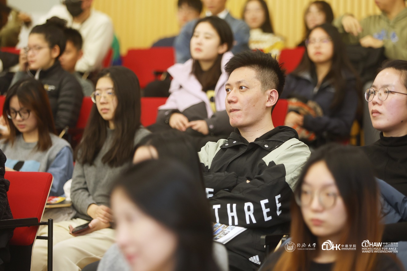 本次“德国企业日”,分为展台咨询和讲座报告两部分。15家知名德国企业的高管和资深HR经理人做了精彩报告,向学生分享行业技术创新、市场营销策略、面试与准备简历技巧、职业发展路径、德企特点与跨文化领导力等职场资讯。参加活动的学生积极向企业代表提问,现场气氛活跃。