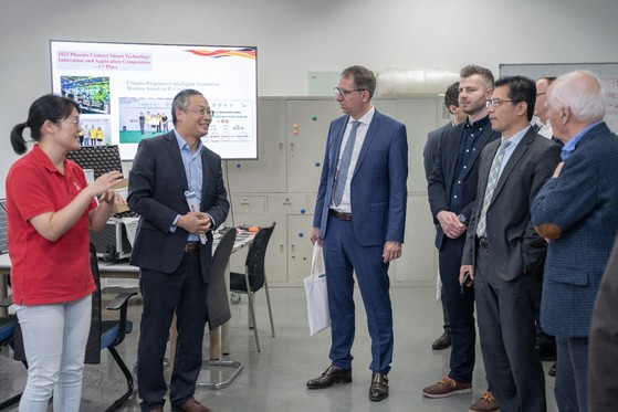 当日,访问团还听取了学院专业主任对各专业情况介绍,并参观了工业4.0-智能工厂实验室、建筑微电网实验室等。