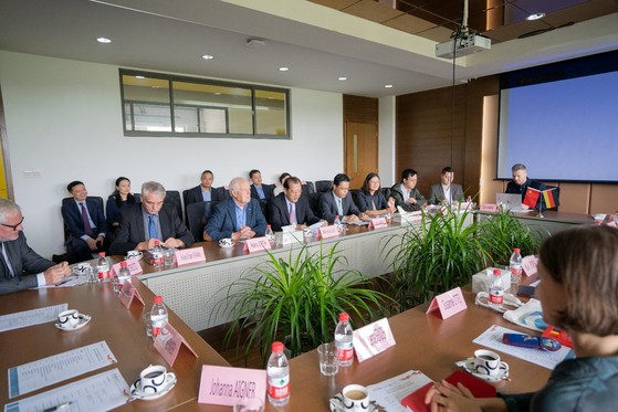 2023年10月14日,德国学术交流中心(DAAD)秘书长凯•西克斯博士(Dr. Kai Sicks)、德国学术交流中心海外项目部主任奥苏姗(Susanne Otte)女士、管理委员会办公室主任森德(Anna-Lena Sender)女士,德国教育与研究部(BMBF)国际事务司亚太处副处长霍夫曼(Jens Hofmann)先生、项目官员孔嘉明(Benjamin Kroymann)博士,德国驻华大使馆科教领事埃尔贝克(Daniela Ehlbeck)女士,德国高校国际合作联合会(DHIK)代表、中德工程学院德方总协调员奥特教授(Prof. Dr. Hans Wilhelm Orth)等一行来我院访问。同济大学副校长、中德学部主任雷星晖教授、中德工程学院党委书记冯一平、院长王继平接待来访代表。