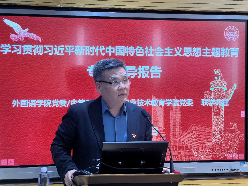 5月12日下午,我院党委与外国语学院党委开展主题教育联学共建,在汇文楼518举行党委中心组(扩大)学习。此次学习邀请中国国际问题研究院欧洲研究所所长崔洪建研究员,做题为《中国式现代化与中欧关系》的专题辅导报告。两院党委成员及党员代表参加了本次学习,专题学习由外国语学院党委书记郑春荣主持,中德工程学院与职业技术教育学院党委书记冯一平致辞。