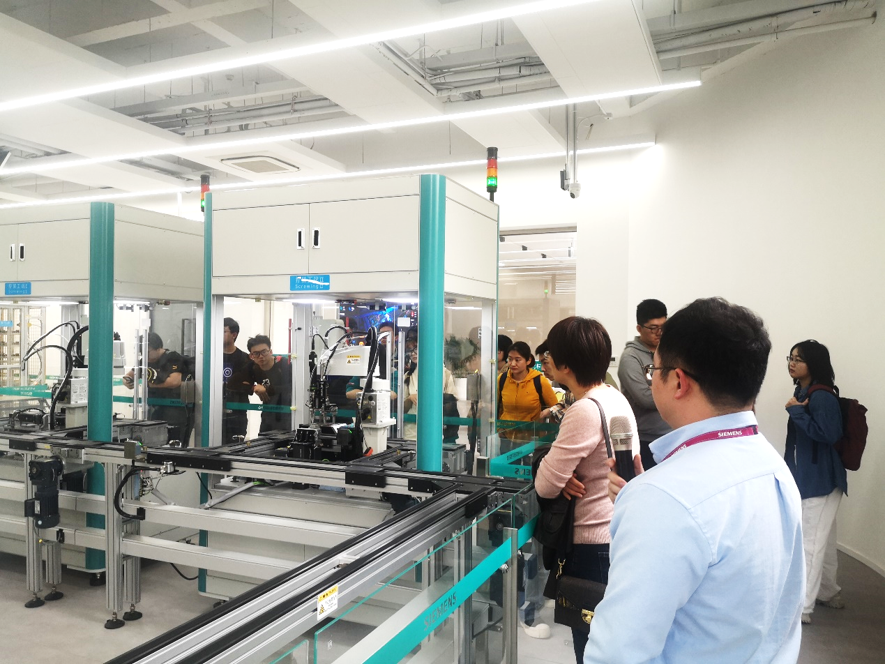 西门子常熟数字化赋能中心由苏州兰德集团、西门子联手建设,是西门子(中国)首个“先进制造+低碳园区”两位一体数字化赋能平台项目。项目包含数字化赋能中心和智慧园区物联网运营中心,以数字化赋能中心为载体,提供软、硬件解决方案,并提供专业数字化人才支持,通过数字化技术能力和工业4.0领域全球产业资源的导入,共同推动常熟及长三角地区企业的数字化升级、数字化产业高质量集聚和产城融合可持续发展。同学们认真聆听了西门子工程师的讲解,观摩工业4.0全机械化的自动操作,在虚拟现实体验区亲身体验了虚拟现实操作。