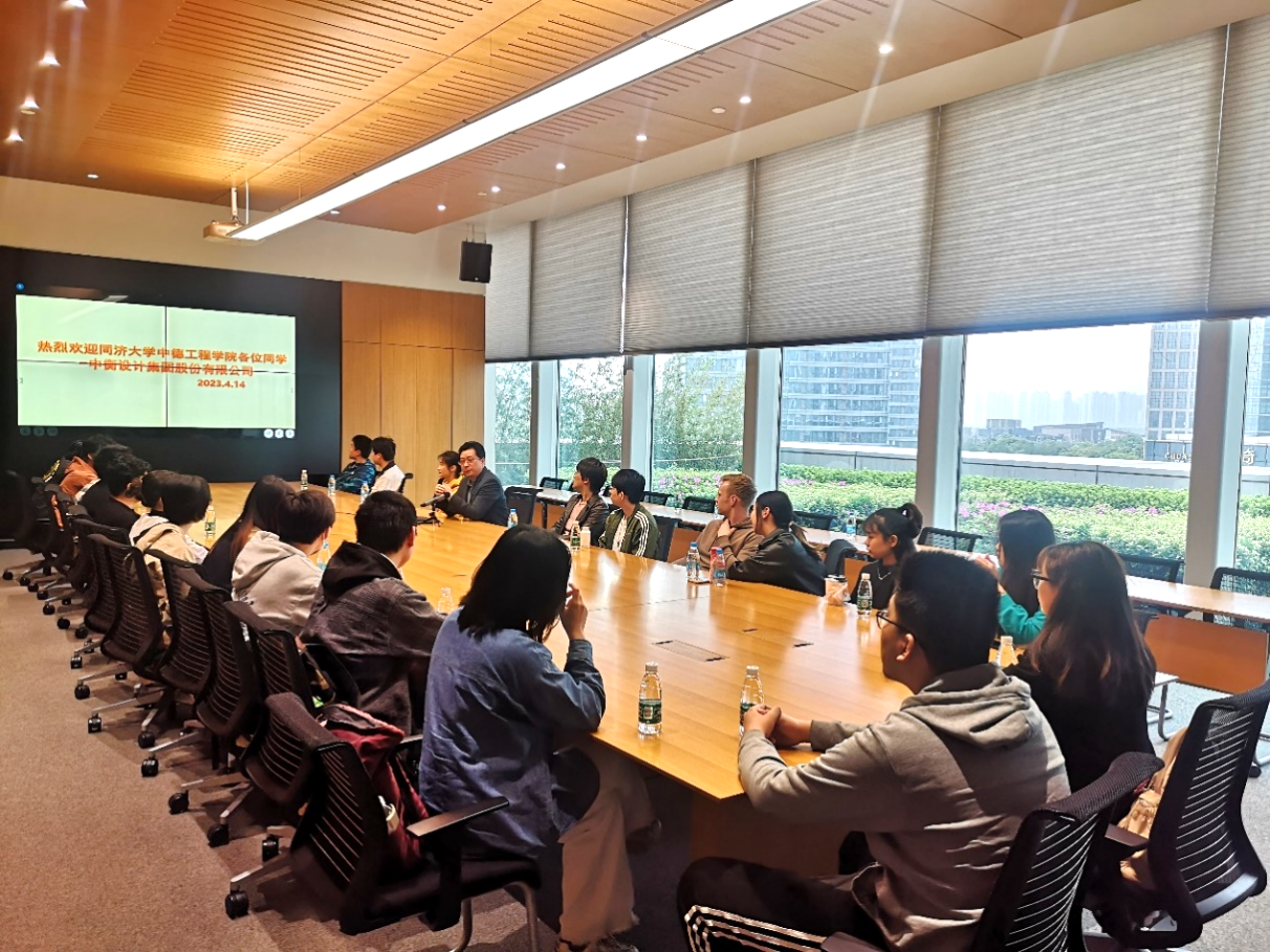 图1 中衡设计集团电气总工傅卫东为师生介绍中衡设计大厦设计理念