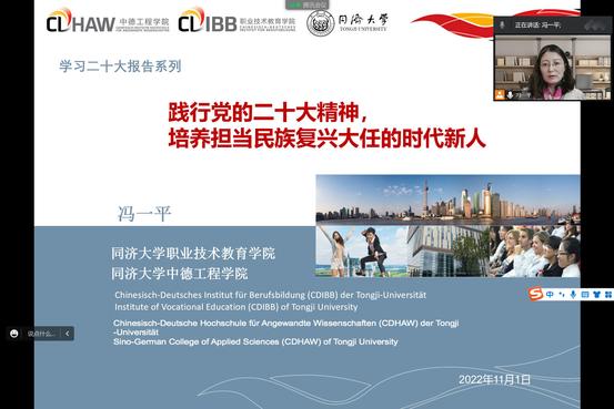 11月1日,中德工程学院与职业技术教育学院党委、分党校在济事楼342教室开展了党课活动,党委书记、分党校校长冯一平为全院师生上了一堂题为《践行党的二十大精神,培养担当民族复兴大任的时代新人》的党课。本次党课采用线上线下两个会场结合的形式,党员、发展对象、入党积极分子、入党申请人等一百五十余人参加学习。