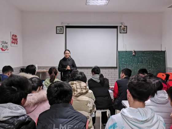 活动开始,蒋老师借助一系列基础的德语单词,向同学们介绍了德语学习的窍门,内容包括“Motivation动机”、“Zeit时间”、“Lernumfeld学习环境”、“Erfahrung经验”四个方面。