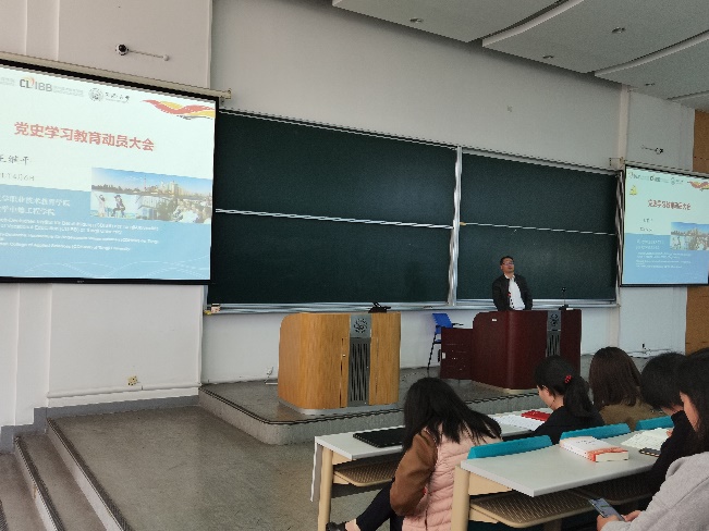 2021年4月6日下午,中德工程学院与职业技术教育学院党委、分党校组织召开了全院党史学习教育动员大会暨新民主主义革命时期党的历史报告会。本次学习由学院党委书记、分党校校长王继平主持,分四平路校区和嘉定校区两个会场同时进行,学院教职工党员、学生党员、发展对象和入党积极分子等共计125人参加。