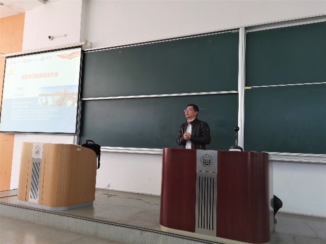 动员大会上,王继平书记首先带领与会师生深入学习了习近平总书记在党史学习教育动员大会上的重要讲话精神,并通过对党的重大历史事件的生动讲述和当前国内外时事的适当延伸,帮助学院师生认识党史学习教育的重要性。之后,王书记介绍了学院党委制定的党史学习教育工作实施方案,并结合学院实际情况及愿景规划与师生分享了“学院、学科发展的几点想法”。