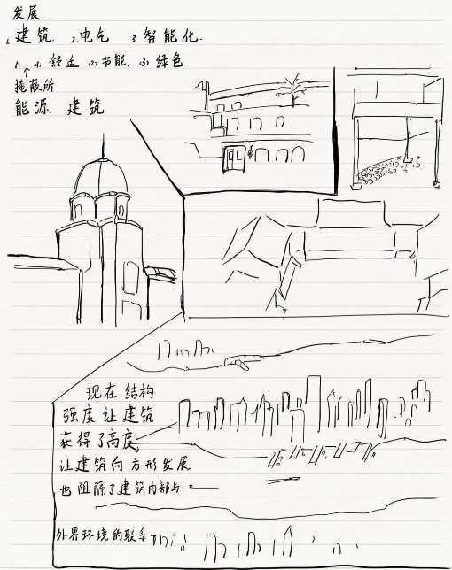 对应这三个关键词,龙教授将本次讲座分为三个部分——建筑、电气以及智能化。龙教授从建筑切入,运用世界各地各个时间段的建筑照片向学生们直观地展示了世界各地建筑地的发展历史,展示了地理气候以及技术发展对建筑造型的影响。当展示近现代建筑时,龙教授从高层建筑以及暖通空调的运用引入近现代建筑的发展历程,向我们展示了建筑如何一步步地从节能走向绿色,并提出了生命建筑的概念,让大家受益匪浅。