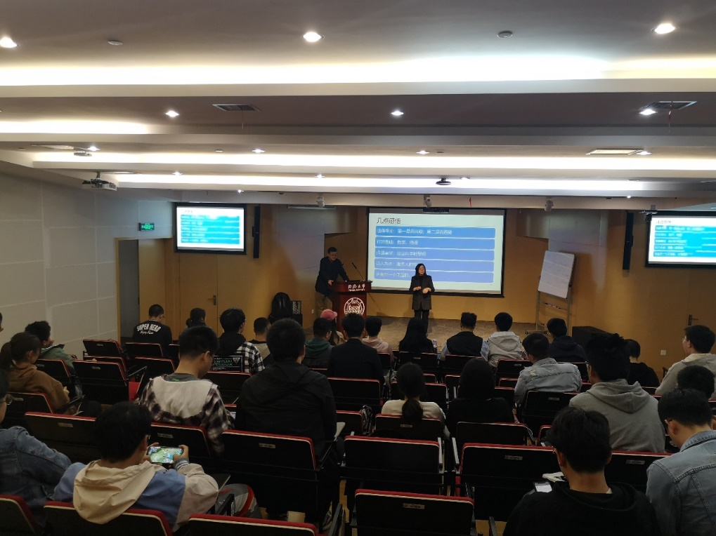 讲座接近尾声,龙教授向同学们给出了关于学业和人生的几点建议。龙教授希望大家能够打好学科基础,尤其是学好数学和物理。同时,教授希望,同学们能够建立科学的思维,并坚持以人为本,服务人的需求。最后,在一片掌声中,龙教授结束了这一个小时的讲座。同学们在此次讲座结束后也对自己肩上的任务有了更加清晰的认识。即将参加专业分流的2020级同学,也对本专业产生了浓厚的兴趣,希望在今后能一起投入到绿色建筑、智能建筑的行业中来。
