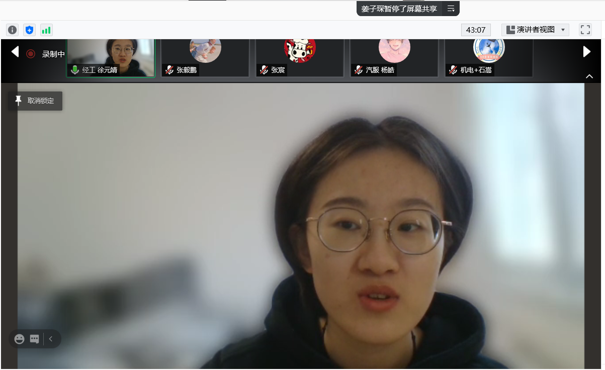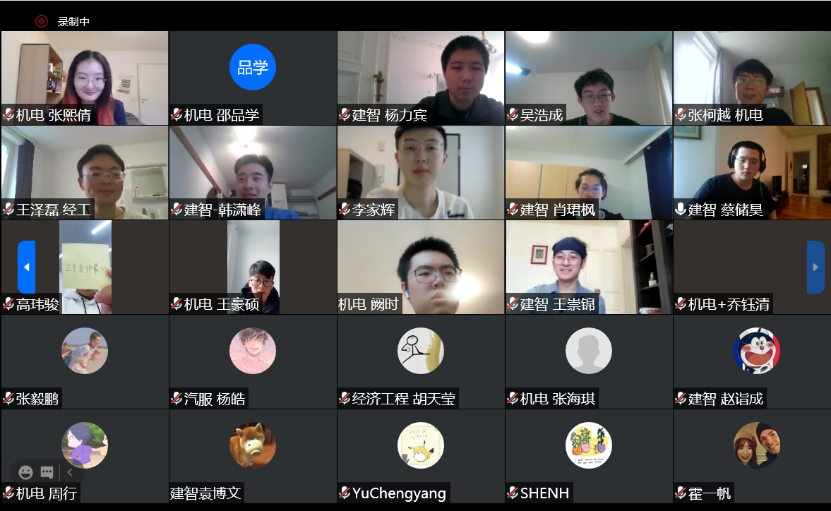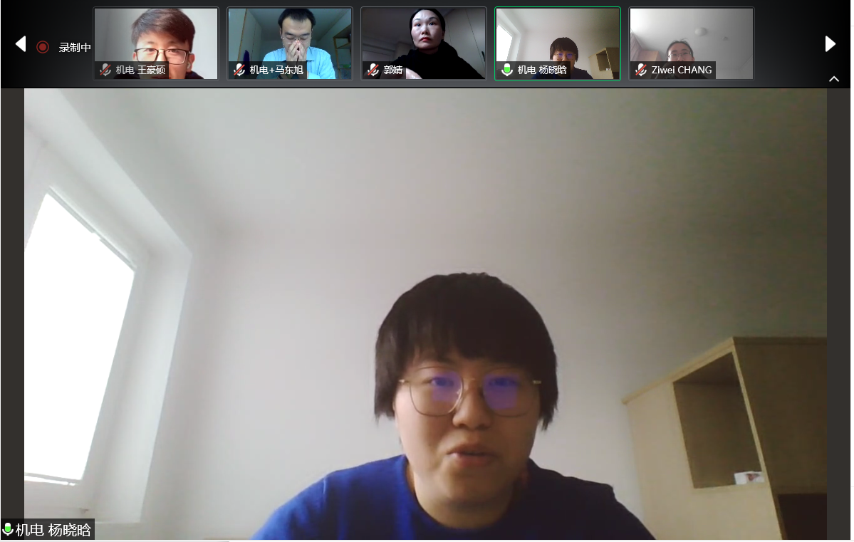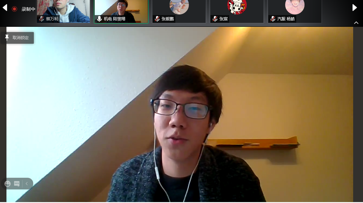 随后,八位17级在德学生代表依次发言。同学们从学习和生活简单介绍了自己在德国半年来的情况,分享了一些德国有趣的经历。学习方面,同学们都展现出了积极向上的学习面貌,大家纷纷表示德国学习的自主性更强了。上课的内容需要在课后增加自学和复习的时间,某种程度上来说,学习能力得到了一定的提高,虽然一开始纯德语的课业学习都有些困难,但是一学期的时间已经适应了德国的学习节奏。生活方面,现在德国的lockdown对于大家的影响其实并不大,德国的城市环境比较优美,悠闲舒适。空闲时候,住得近的同学们还会一起做饭,切磋厨艺,体会生活乐趣。遇到的德国人也都非常友善,乐于助人。