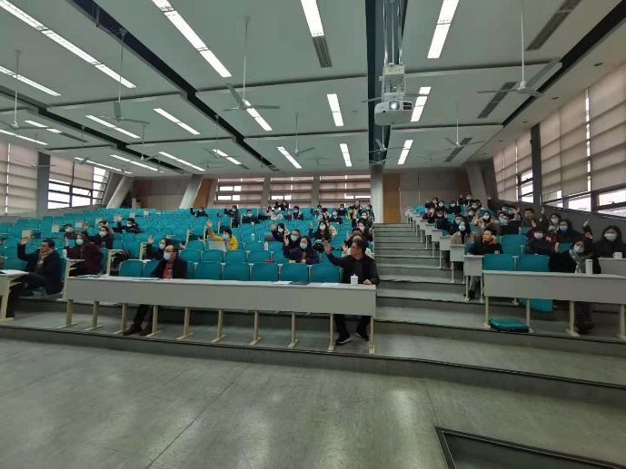 冯晓院长代表学院领导班子在大会上向全体教职工进行了2020年度学院工作报告、财务报告,并提请大会审议,在听取了冯院长的汇报后,全体参会老师一致鼓掌通过。冯院长之后又着重强调了近期防疫工作的重要性。