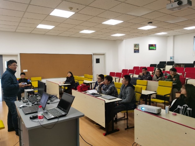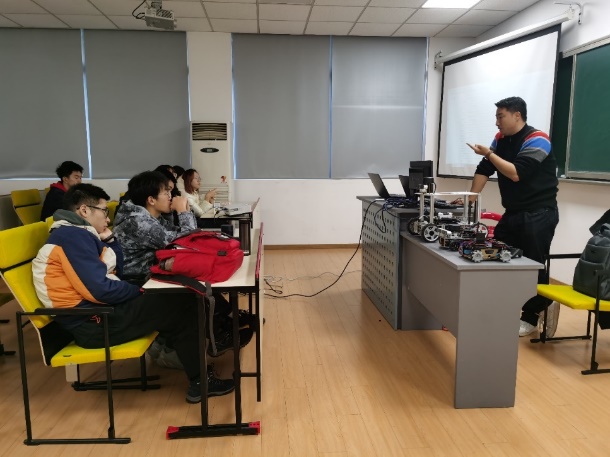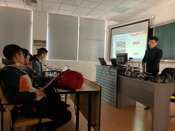 活动伊始,王琪老师向在座的同学们系统性地介绍了智能网联实验室的四大方向——智慧交通系统、自动驾驶视觉感知系统、ROS智能车和虚拟驾驶,并展示了每个方向的相关成果。他回顾了往届同学所开展的项目——Green power新能源赛车以及单片机智能小车,并鼓励大家利用课余时间多参加学校以及学院的相关项目,锻炼自己的创新意识和动手能力。