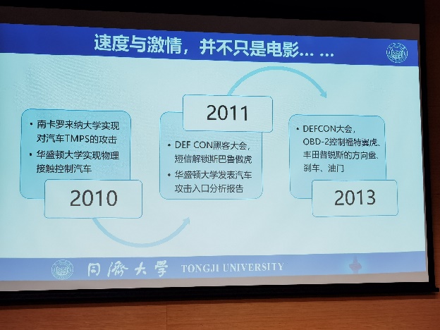 黄教授讲到,无人驾驶汽车作为一种可以实现替代人来操作的新一代汽车,是近年来的研究热点,并已经在越来越多的城市进行开展示范运营。但是智能网联汽车真的安全吗?《速度与激情8》的惊险片段是否真的会上演吗?近年来发生的特斯拉等汽车的事故又是什么原因?讲座将围绕着学生普遍关心的问题,介绍无人驾驶汽车的基本概念、基本组成,重点介绍无人驾驶汽车“感知”的原理,无人驾驶汽车信息安全的研究现状。并向大家展示,如何利用对抗样本技术去攻击无人驾驶汽车,并进一步探讨未来无人驾驶的发展方向。