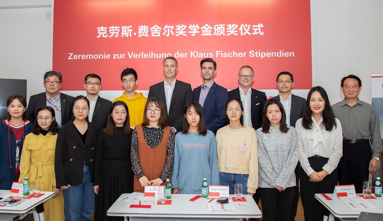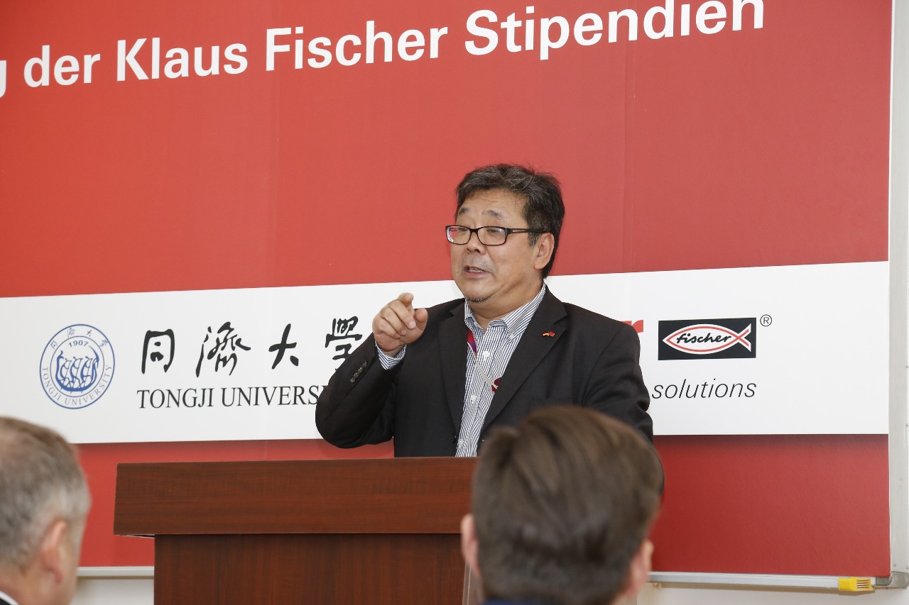 2019年10月16日下午,克劳斯•费舍尔奖学金颁奖仪式在同济大学嘉定校区济事楼举行。同济大学中德工程学院冯晓教授、同济大学中德工程学院书记王继平教授、同济大学职业技术教育学院张建荣教授、慧鱼集团全球锚固系统总裁迈克尔•盖斯布尔先生、慧鱼集团锚固系统亚洲/中东/非洲区域总裁斯文•哈格先生、慧鱼中国总经理安迪先生、慧鱼中国商务总经理陆文耀先生,获奖学生及代表出席了颁奖仪式。