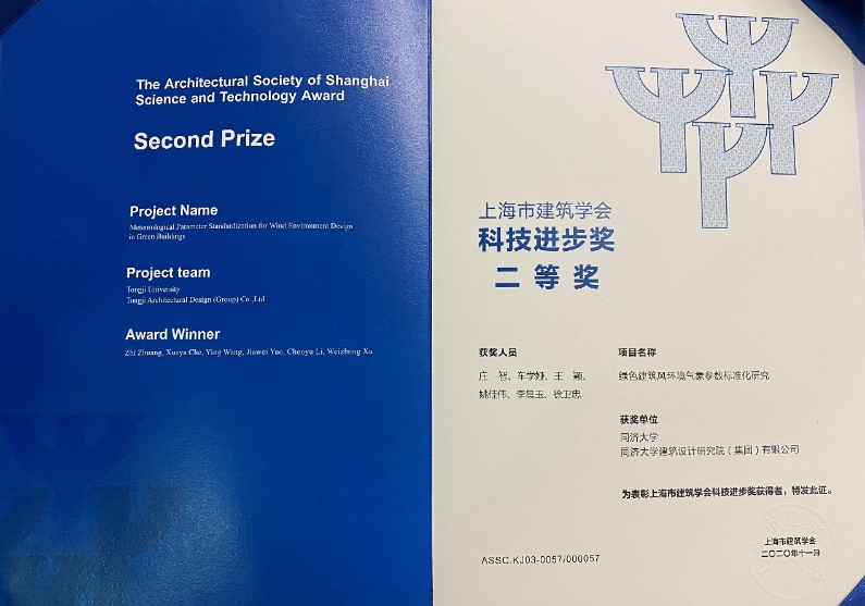 2020年11月27日,上海市建筑学2020年年会暨颁奖典礼于上海市黄浦区中山东二路538号隆重召开,本次年会旨在对2020年度的学会的各项工作进行回顾与总结,并对年度内的获奖项目、优秀单位及优秀个人进行表彰。我院建筑电气与智能化专业庄智副教授牵头申报的项目《绿色建筑风环境气象参数标准化研究》荣获上海市建筑学会第三届科技进步奖二等奖。