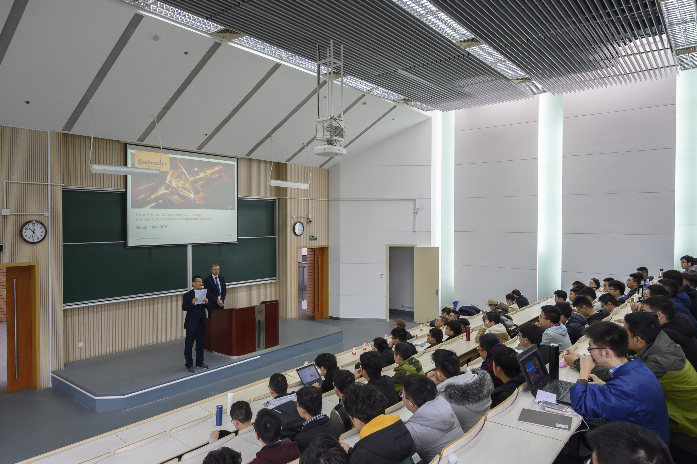 签约仪式后Koch先生一行还受邀做了关于“汽油机及汽油机增压”的报告,介绍了行业的前沿知识,受到了广大师生的热烈欢迎。