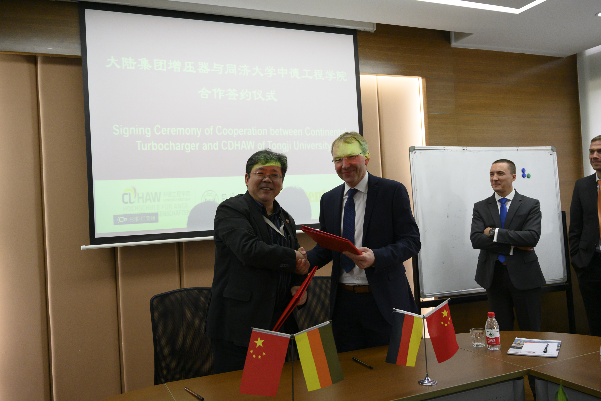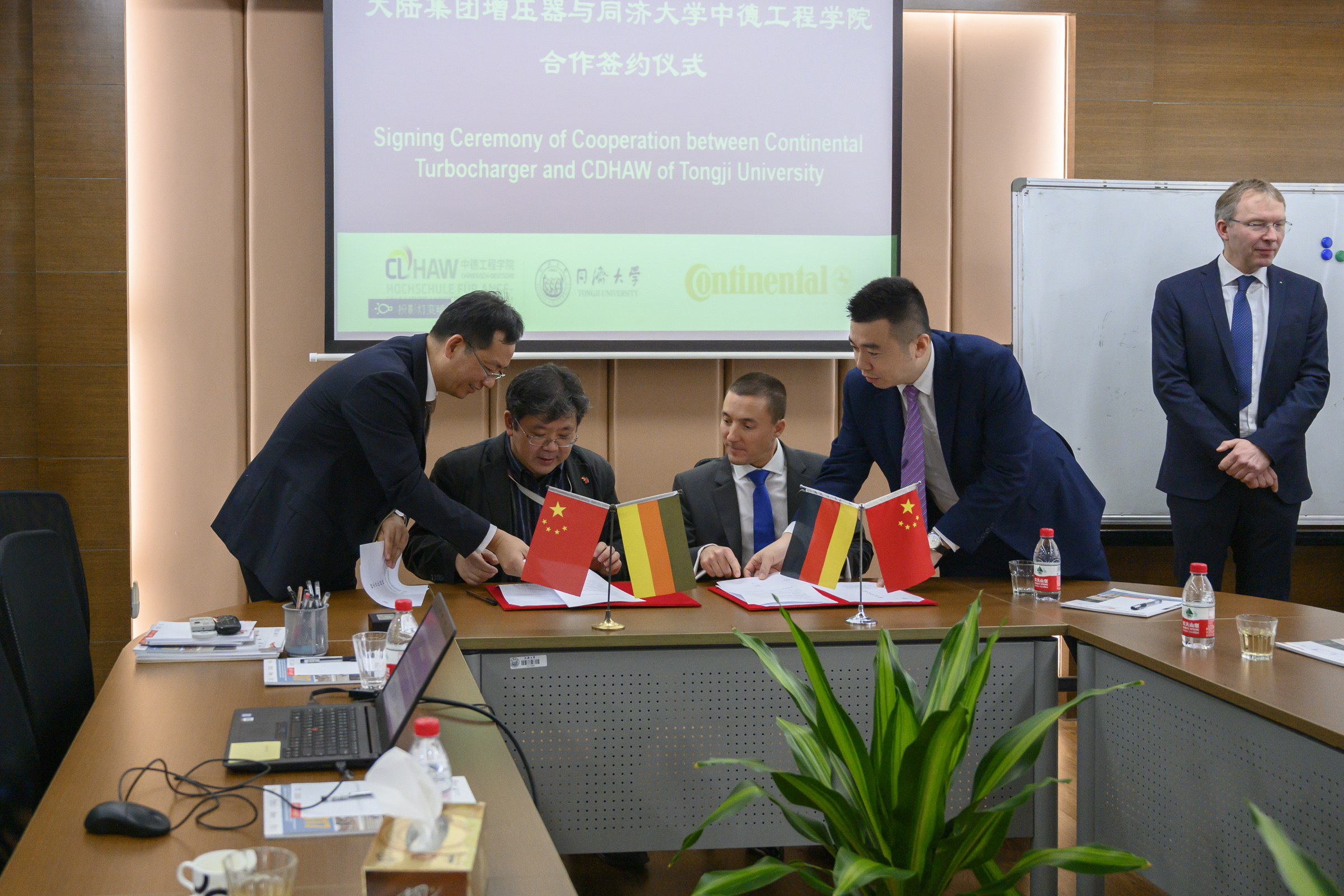 2019年3月14日上午,德国大陆涡轮增压器产品线全球研发总监Mr. Achim Koch一行拜访同济大学中德工程学院,冯晓院长代表学院欢迎Koch先生来我院交流参观,双方就“密切校企合作,建立长期稳定的同济大学校外工程实践教育中心;探索校企联合培养创新型、应用型人才的新模式;实现资源共享,企业与同济大学在就业招聘、产品研发、成果转让、技术培训等方面开展更广泛合作”等方面展开了深入的交谈,并签署了合作协议。