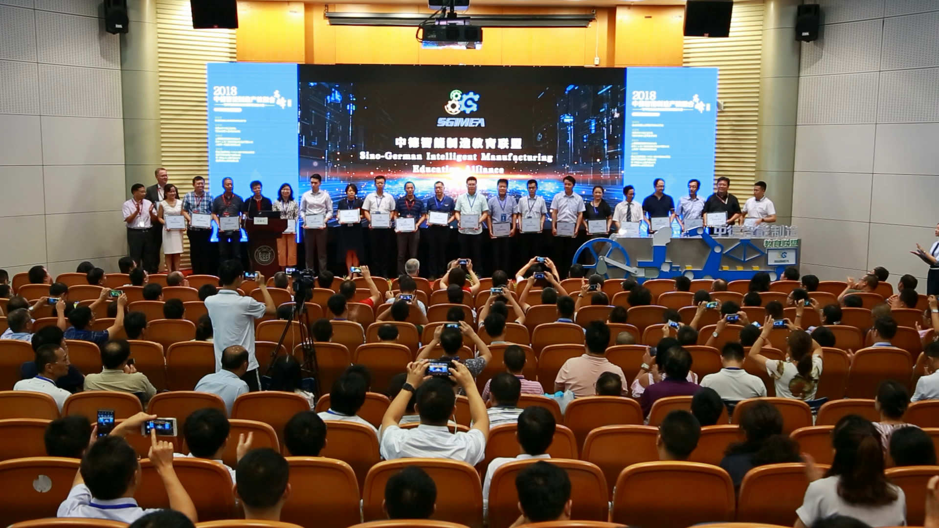 期间,“中德智能制造教育联盟”正式成立。中德工程学院院长冯晓主持成立仪式并公布联盟成员名单,为联盟的各成员单位代表颁发了证书。