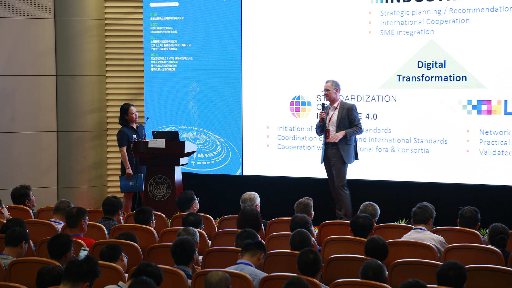 德国工业4.0标准制定委员会主席Roland Bent,对德国工业4.0标准的新发展进行分享,为与会者提供了极具思想开放和思维拓展的窗口,以及智能制造产教融合的理论实践依据。德国工程师协会教授Christian-Andreas Schumann论述了在全球化和数字化背景下教育领域网络化协作的重要性,其研究领域的专业度和内容的丰富性令与会者大呼痛快。