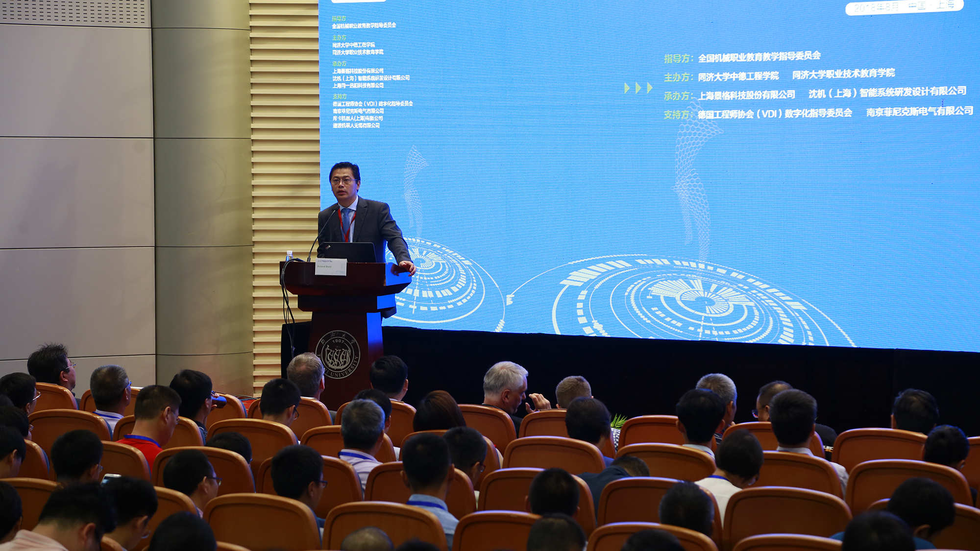 本届论坛以全国机械职业教育教学指导委员会为指导单位,同济大学中德工程学院和同济大学职业技术教育学院联合中德智能制造教育联盟主办,由上海景格科技股份有限公司、沈机(上海)智能系统研发设计有限公司、上海同一迅阳科技有限公司承办。以及德国工程师协会(VDI)数字化指导委员会、南京菲尼克斯电气有限公司、库卡机器人(上海)有限公司、速波机器人无锡有限公司等企业为本次论坛提供了产教融合实践之道的各项支持。