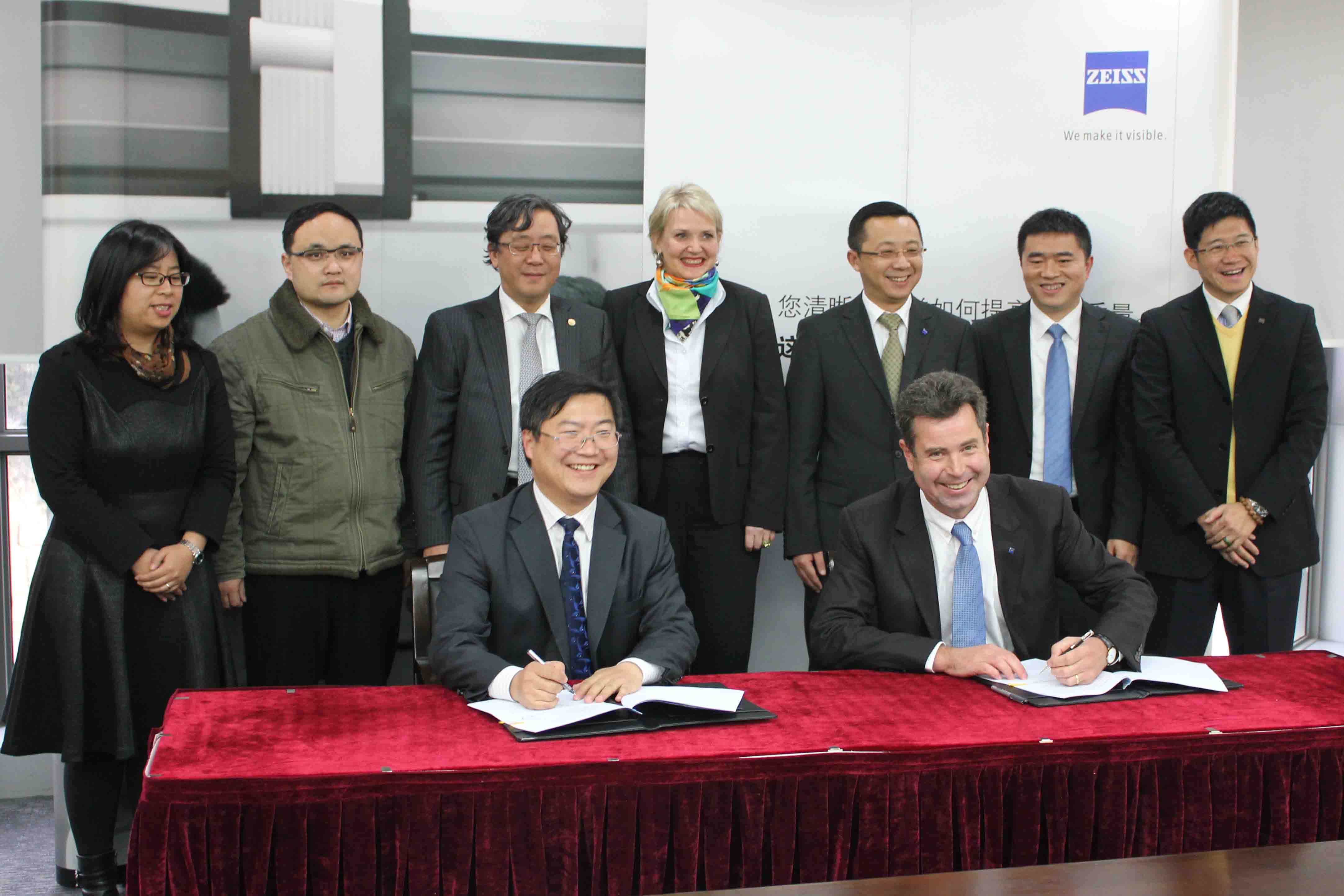 1月13日下午,同济大学与德国卡尔·蔡司(以下简称蔡司)公司签署协议,正式启动“同济大学 -蔡司教学科研基地”。同济大学副校长吴志强教授,蔡司光学仪器(上海)国际贸易有限公司董事总经理Maximilian Foerst先生分别致辞,对该基地的建成表示热烈的祝贺。副校长吴志强教授和Maximilian Foerst先生共同为“同济大学-蔡司教学科研基地”揭牌。我院副院长陈明教授与Maximilian Foerst先生签署了合作协议。
