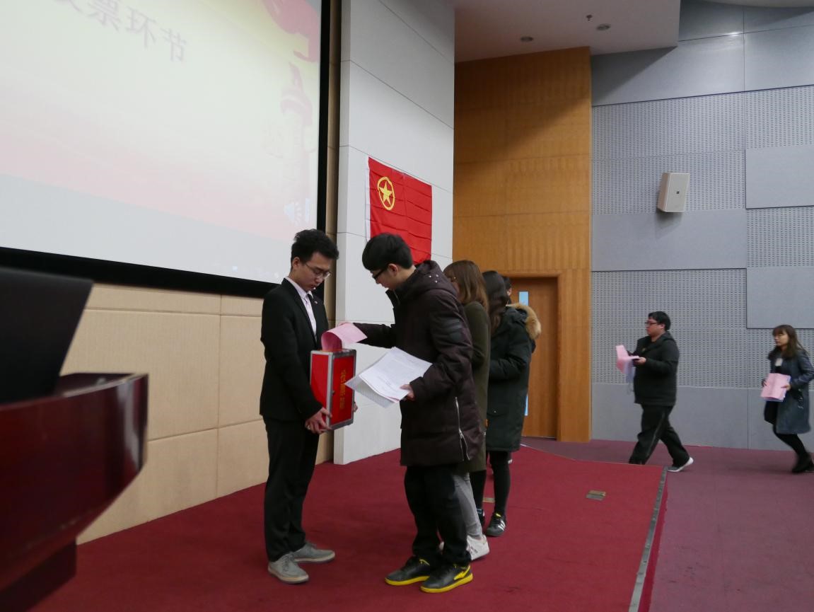 大会选举同济大学中德工程学院学生会主席团,候选人杨志成同学、蒋晗茜同学、薛凡同学依次发表了竞选演讲,纷纷表达了愿意为广大学生服务的决心。