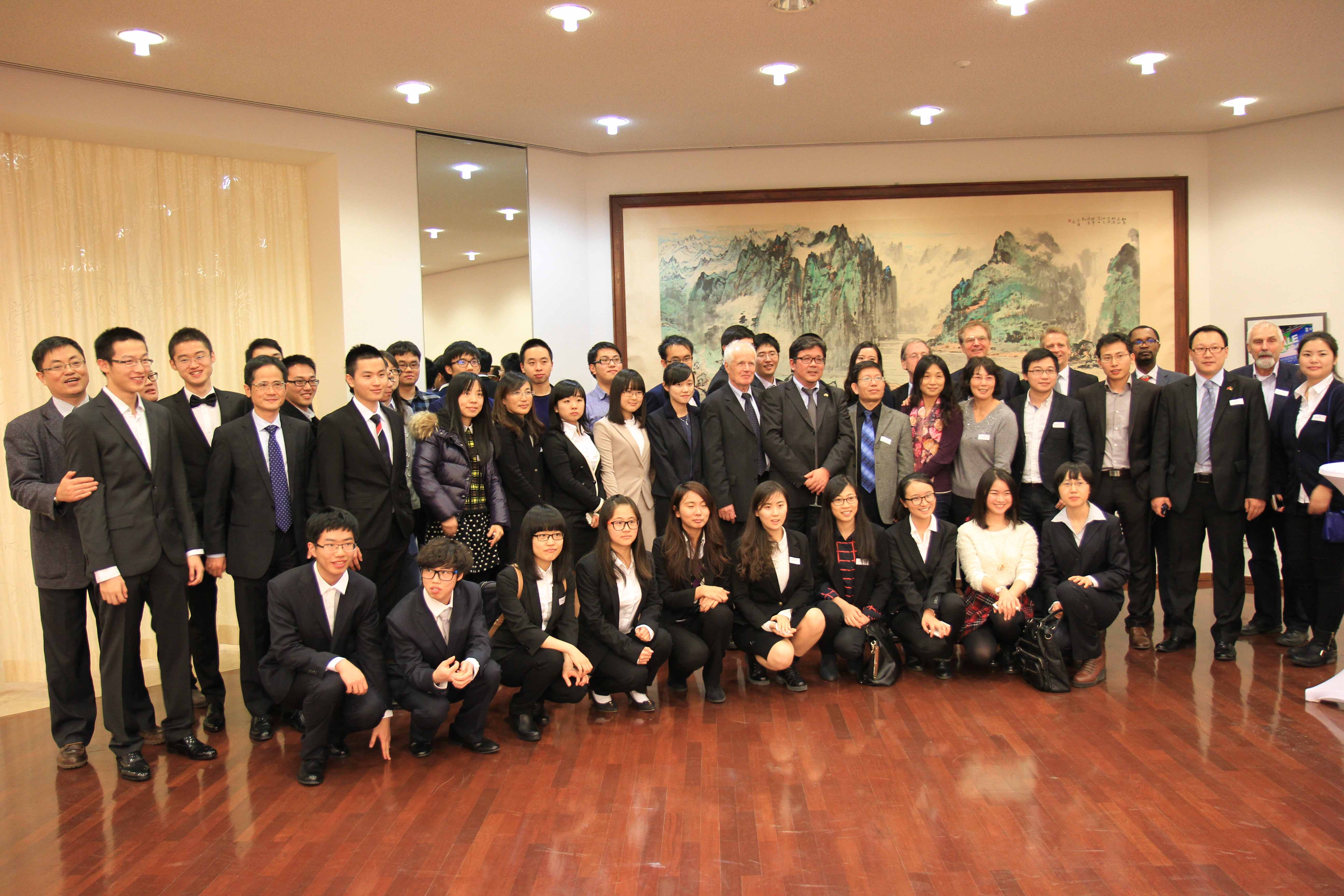 "中德工程人才培养10周年”庆祝活动12月8日晚在中国驻德国大使馆举行。近百名中德教育界、企业界人士和学生代表欢聚一堂。我校副校长吴志强教授、德国教研部国际合作司副司长梅茨格、曼海姆应用科技大学校长Leonhard教授、德意志学术交流中心秘书长Rüland博士、院友代表王仕亿出席并致辞。
