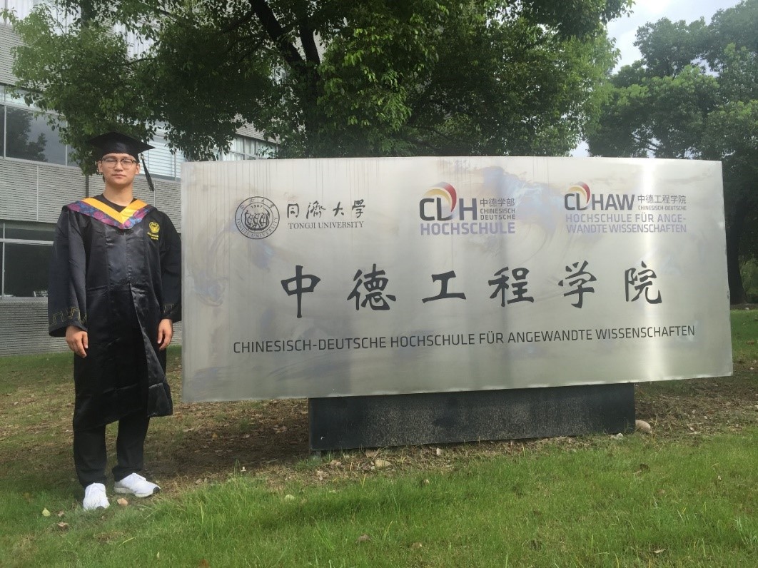 回顾四年的本科生活,我最想和学弟学妹们分享的就是:求学之路并不会是一帆风顺和美妙动人的,遇到困难时一定要多想想自己为什么出发,把每一次困难都当成锻炼自己的机会,你会从中收获很多。我在学德语,做项目,找实习,做毕设的过程中都遇到了很多困难,但是我没有因此动摇过自己成为一名优秀工程师的初衷,所以我现在才有机会在这里和大家分享我的故事。最后希望我大学一路走来的经历可以给学弟学妹们一点借鉴,也祝愿中德工程学院越办越好!
