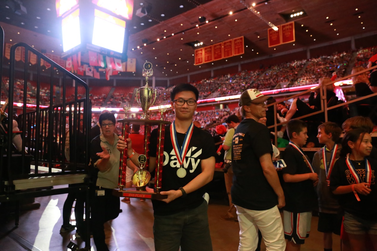 郑鹏飞同学来自艺术与传媒学院,在队伍中被大家称为“导演”。他回顾整个比赛时说到:最终还是带着沉甸甸的奖杯和奖牌回到国内了。很可惜因为文化差异和语言上的劣势输给了卫冕冠军队,但是能够获得世界头脑奥林匹克总决赛装置题组别的亚军,能够披着国旗登上领奖台已经足够让我们骄傲。